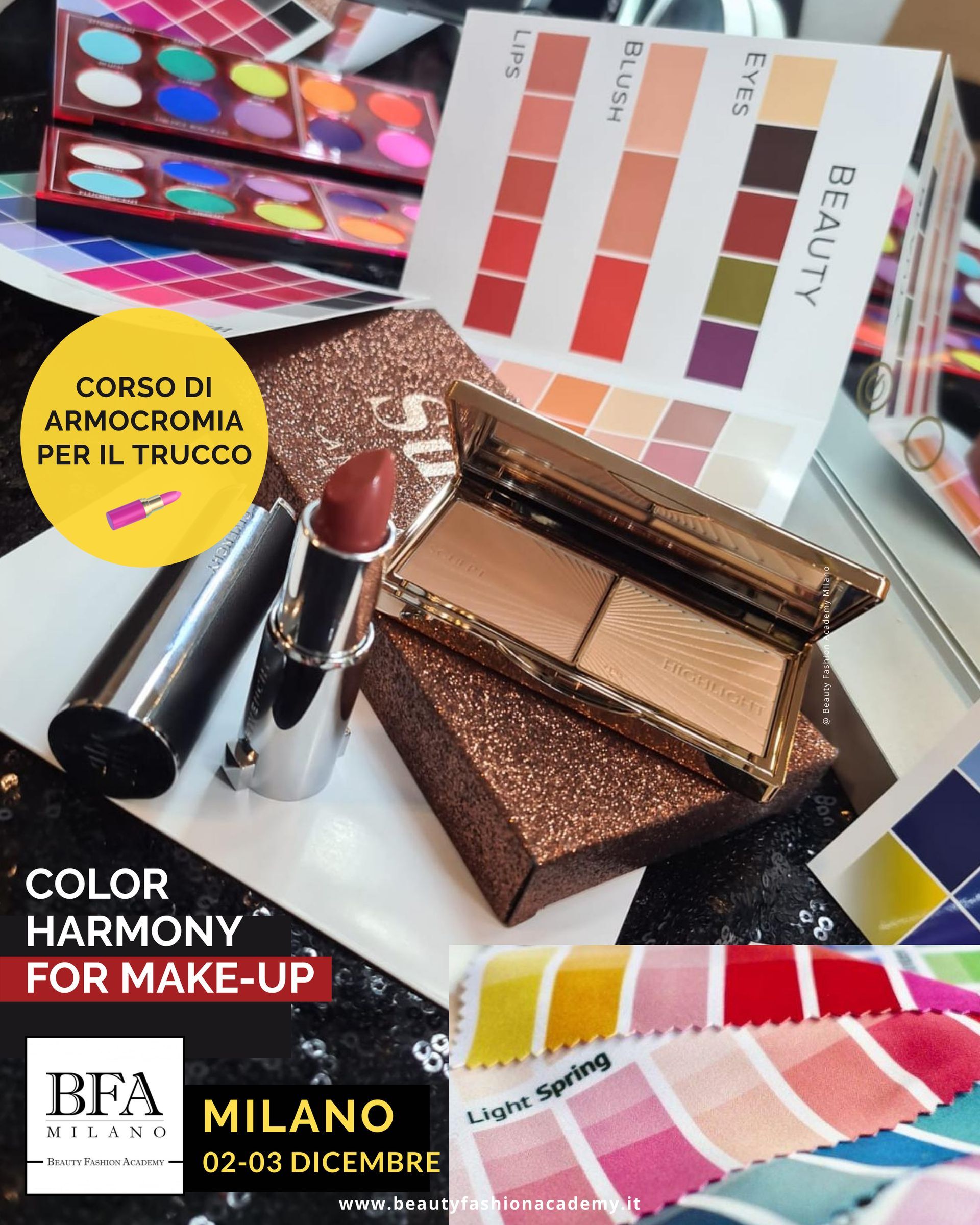 The main focus of the course is to put the Make-Up professional in contact with the world of color and with the Armocromia , a topic that is now essential in the work of beauty addicts, but reworked and enhanced by professional Make-Up Artists specialized in the subject and also active in the world of art, fashion, design and professional consultancy, to teach how to develop a color diagnosis Correct and functional to the make-up artist's manual work p to guide him to use it even more targeted and aware of the colors to use, not only based on the chromatic type of the person on whom it will be operated to highlight and emphasize the key characteristics of the season to which it belongs and the type of correction that will have to be performed (from dark circles and discolouration, to the camouflage of spots, hematomas, angiomas, vitiligo etc), but to break the pattern, one consciously checks the pattern whenever the work requirement requires it, as frequently for example on photographic sets, in the creation of editorials or advertising campaigns. In addition to guiding him in an even more conscious choice regarding the products to compose/integrate his beauty (optimizing space and costs).
